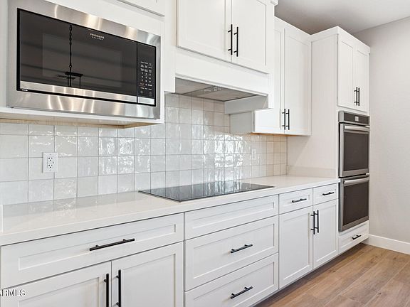 Construction is nearly complete on this incredible custom home located in the highly desired Apache Wells 55+ adult community. This home boasts an expansive open-concept layout, a gourmet kitchen and living area perfect for entertaining, complete with high-end cabinetry, elegant white quartz countertops, a 36'' cooktop, double ovens, and premium flooring and tile throughout. The Kitchen includes staggered cabinets, a walk-in pantry, & a massive single bowl farmhouse sink. The luxurious owner's suite includes a spa-inspired bathroom, sleek modern shower, and dual vanities. 30 - 45 DAY CLOSE! Apache Wells is an inviting community with an incredible golf course, clubhouse, pool/spa, fitness center, library, craft room, ceramics, woodshop building, pickleball courts, & bocce ball all available to you.