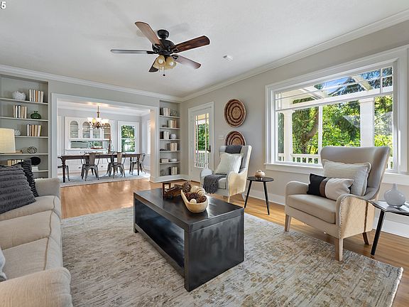 This 1928 Farmhouse delivers a bevy of comforts, tranquility and features galore! Imagine living in your own park (0.68 acres) with picturesque beauty to behold from every vantage point... NOW schedule your in-person viewing of this amazing property and come see for yourself what exceptional living feels like. This home sets a high bar for lifestyle with truly too many features to mention: generous 3,072 sqft layout over 3 floors, Brand New 30 year comp roof, hardwood floors, built-ins, 4 bedrooms, 3 full bathrooms, sun deck(s) & covered porches with durable low maintenance composite decking, covered firepit, SS appliances, gas cooktop in kitchen island, skylight in primary, large primary bathroom with shower & soaking tub, loads of storage space, wood burning fireplace, ceiling fan in living room, dual sinks in 2nd upper bathroom, air conditioning, high efficiency furnace. The detached outbuilding(s) provide additional charm to the yard while offering functionality too. [Home Energy Score = 3. HES Report at https://rpt.greenbuildingregistry.com/hes/OR10241383]