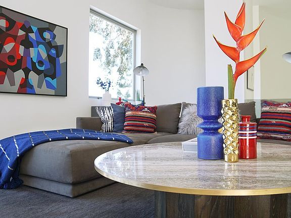 Pristine, modern, timeless, and intelligent Steven Hill architectural view home in Los Feliz. Recent designer renovation including Ernestomeda kitchen featuring Miele and Bertazzoni appliances, and gorgeous master bathroom. This sophisticated residence features Terazzo and wood flooring, high ceilings, open spaces, and oversized picture windows that let in an abundance of natural light while framing breathtaking city, mountain, and sky views. An elevated walkway bridge connects the home with terraced outdoor gardens leading to a large view deck, perfect for entertaining. Moments from all that Los Feliz has to offer, from entertainment and shopping at the Los Feliz Village, to outdoor recreation at Griffith Park. A truly inspirational offering with quality upgrades and views.