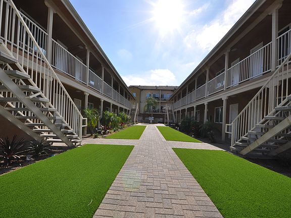 Enjoy the serenity of our beautiful and quiet studios, complete with a full-size kitchen and a full bathroom equipped with a linen closet for additional storage convenience. Nestled within a lush, green oasis, our gated community boasts meticulous landscaping, ensuring a tranquil living environment. Responsive on-site management, 24/7 emergency maintenance services, a communal BBQ area, mini-golf space, and a secure lock-coded laundry room contribute to a hassle-free living experience in San Diego.