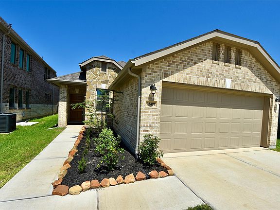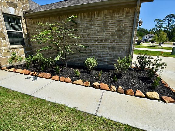 Step into this delightful home featuring 3 spacious bedrooms, 2 full baths, and a 2-car garage. The kitchen is a true centerpiece with beautiful maple cabinetry, sleek quartz countertops, a convenient island, and a low bartop perfect for casual dining or gathering with friends. The owner's suite offers a luxurious retreat with a huge walk-in closet, dual vanities, and a separate soaking tub and shower. Relax or entertain outdoors on the covered patio overlooking the backyard. Nestled in The Landing, a charming New Caney community, you'll enjoy a peaceful small-town atmosphere while staying close to everything you need. Just minutes from Valley Ranch Town Center, FM 1485, I-69, and the Grand Parkway, this location combines convenience with tranquility. Come see for yourself you'll love calling The Landing home!