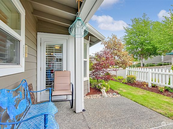 Exceptional high end 2 BED/2 BA totally remodeled property. Corner unit, no one above/below only attached at garage. Rare enclosed rear private garden patio with gate. Gorgeous kit update features new cabinets & quartz counters, soft close drawers, full height backsplash, sink, & SS appl. Large pantry. Spacious L/D w gas fp & entertainment built-in. Both 3/4 baths updated. All new flooring including luxury vinyl plank & high quality carpet. New light fixtures throughout. Premium quality shutters. Large sunny nook/office/sitting room. Expansive front yard w picket fence. Full s/s laundry. BED/BA on both levels. Lots of linen/closet space. Attached garage. Amenities-pool, trails, pea patch garden, activities, classes, +! 55+ Active Community.