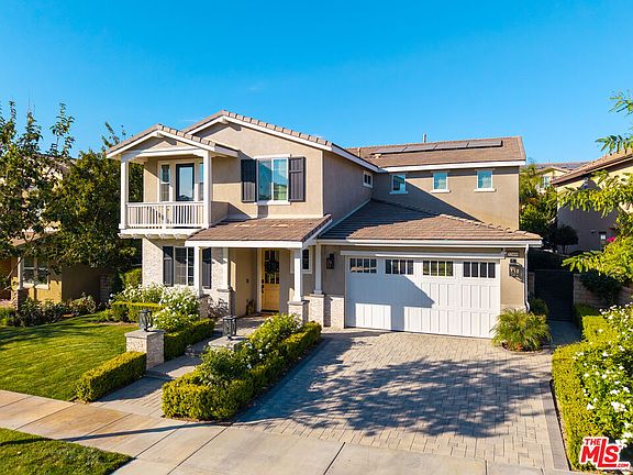 *TurnKey River Village Pool & Spa Home with Custom Upgrades, No Mello-Roos*...Resort-style living awaits at 22499 Leaf Spring Ct, a beautifully upgraded 5-bedroom, 3-bathroom home in Santa Clarita's sought-after River Village community. Blending elegance, comfort, and a true turn-key lifestyle, this residence showcases custom details throughout and a backyard designed for entertaining. The main level welcomes you with an inviting living room featuring a marble-tile fireplace, custom mantel, built-in bookcases, and surround sound extending outdoors. The dining area boasts a custom hutch, window seating, and a butler's pantry with wine fridge, while the adjacent kitchen flows seamlessly into the family room and private backyard. A full bedroom and bathroom downstairs provide ideal space for guests or multi-generational living. Upstairs, retreat to the luxurious primary suite complete with a spa-like bathroom offering marble finishes, a frameless glass shower, soaking tub, dual vanities, and a spacious walk-in closet with custom cabinetry. A single glass door opens to a private balcony overlooking the backyard oasisperfect for morning coffee or evening sunsets. A generous loft provides versatile space for a media room, lounge, or play area. Three secondary bedrooms and a remodeled laundry room complete the second floor with both style and functionality. Thoughtful upgrades elevate every corner of the home: built-in desks and cabinetry, detailed wainscoting, freshly painted interiors, a finished garage with epoxy floors and insulated door, and a whole-home water softener system for added comfort and convenience. The backyard is a private retreat with a sparkling pool, relaxing spa, covered patio, and fully equipped outdoor kitchen with bar seating. Custom pavers, exterior lighting, and a generator hook-up add both charm and functionality, creating the perfect setting for entertaining or unwinding at home. River Village residents enjoy access to a pool, clubhouse, and parks, with nearby hiking trails, bike paths, and Duane R. Harte Park just steps away. Families will also appreciate the home's location within the highly regarded William S. Hart Union High School District, plus its central proximity to shopping, dining, and the Westfield Valencia Town Center. The property also offers the rare advantage of no Mello-Roos tax and energy efficiency with a solar system under PPA. Combining turn-key living, custom finishes, a remodeled primary suite with private balcony, and a resort-style backyard, this is one of River Village's premier homes. Don't miss your chance to make it yours.