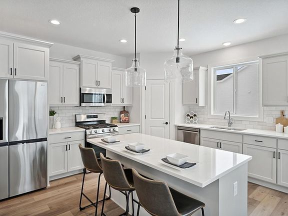 Stone fireplaceWalk-in pantryOpen floor planPremium laminate wood flooringQuartz countertopsMain floor laundryWalk-in closet