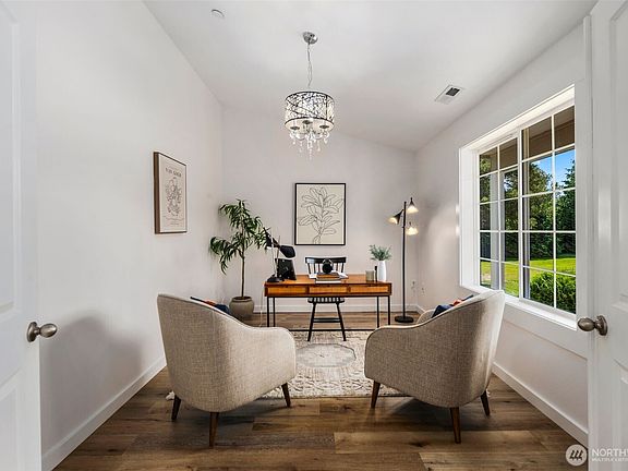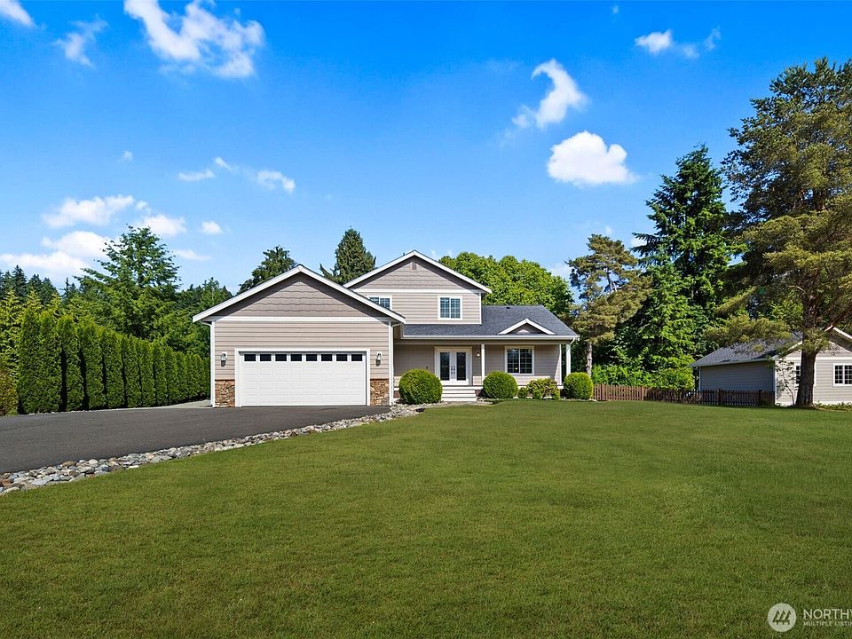 Nestled on nearly 2 acres of flat, gently rolling land, this retreat offers privacy, space, & room to grow. A backyard playground, oversized deck for entertaining, RV parking, & 400 sq ft shed—perfect for lawn gear or workshop—make outdoor living easy. Out front, a sun-filled pasture-like yard is ideal for play or gardens. Inside, vaulted ceilings highlight the open layout with a spacious kitchen & office that flexes as a 4th bedroom. The main-level primary suite includes a walk-in closet & roomy spa-like bath, while upstairs offers two bedrooms, a full bath, & second living space. Even better? Approved plans & permits are ready to add two more rooms, a full bath, covered deck, & 680 sq ft garage! Immaculately maintained, move-in ready!