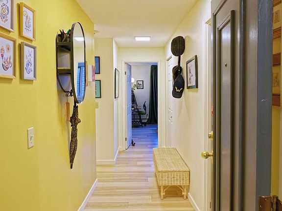 Corner unitModern kitchenWhite cabinetryQuartz countertopsSleek stainless steel appliancesImmense wrap-around balconyWide-plank vinyl flooring