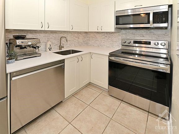RENOVATED 1 bdrm apart.. (approx. 615 s.f.) at The Lancaster condo building, nicely tucked away in a natural parkland setting adjacent to the Aviation Parkway. Just minutes from the City core, the Ottawa River, the Aviation Museum, RCMP, restaurants, groceries & shops of Manor Park East. Kitchen totally renovated w/new cabinets, Quartz countertop, sink & backsplash. Stainless steel appliances ('22) w/Microwave hood-fan. New quality laminate ('22) & baseboards in living/dining/bedroom. Freshly painted ('21). Generously sized ensuite bath w/new vanity, fixtures & medicine cabinet, bath w/sliding shower doors. Windows replaced in 2019. Each floor has its own laundry room. Amenities: spectacular roof top terrace w /360 degree views, exercise room, party room w/kitchen & fireplace, sauna., ground level BBQ patio. Locker & parking included. One pet per unit permitted. Condo Status certificate available. Quick closing possible. Move in ready!