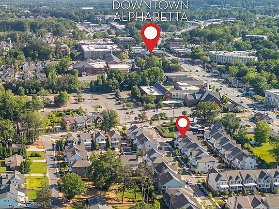 Perfectly situated in the heart of Downtown Alpharetta, this distinguished three-story residence is just steps from the vibrant town center. Enhanced with over $100K in thoughtful upgrades and a private elevator for effortless multi-level living, the home is ideal for those who value both luxury and a walkable, low-maintenance lifestyle. Crisp, clean interiors showcase an impeccable design eye throughout. The kitchen is a true showpiece, designed for more than the everyday chef. Appointed with professional-grade appliances including a Sub-Zero refrigerator, 36-inch Wolf range, smart technology, pot filler, white fireclay ceramic apron sink, expansive quartz seated island with integrated bookcases, large pantry, water purification system, designer LED lighting, and a custom-built buffet with twelve solid-wood, soft-close drawers complete the space. The main level greets you with a versatile home office or 5th bedroom suite and a den or dining room as a sophisticated entertaining space. Outfitted with upgraded RH lighting, glass-front cabinetry with designer illumination, and a built-in beverage cooler, this flexible room is perfect for evenings at the bar or intimate gatherings. The caliber of upgrades completed in such a short time makes this home a true standout. Every lighting fixture has been thoughtfully replaced with dimmable custom LED selections inside and out, complemented by Minka Lavery ceiling fans, Restoration Hardware accents, wired art lighting, and 24 new LED recessed lights. Seven custom closets, including a fully outfitted pantry with a turntable-represent over $10,000 in organization, with an additional $2,000 invested in the laundry room, and the washer and dryer are included. Additional enhancements include custom runners on all four staircases, upgrades to the elevator, oversized mirrors many adjustable features, light and fog settings, and fixtures placed for ideal bedroom lighting. Furnishings are available upon request, creating an exceptional turnkey opportunity. Don't miss the chance to tour this remarkable home, offering unmatched value with upgrades and features. A residence of this scale-offering five bedrooms, five and a half baths, a private elevator, and walkable access to Downtown Alpharetta-represents a rare value not often found in today's market.
