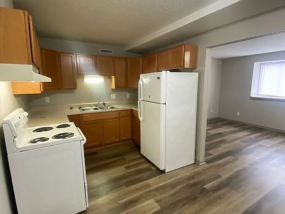 Walk right into a large kitchen/dining/living room area. Perfectly designed with the huge bathroom separating the nicely sized bedrooms.