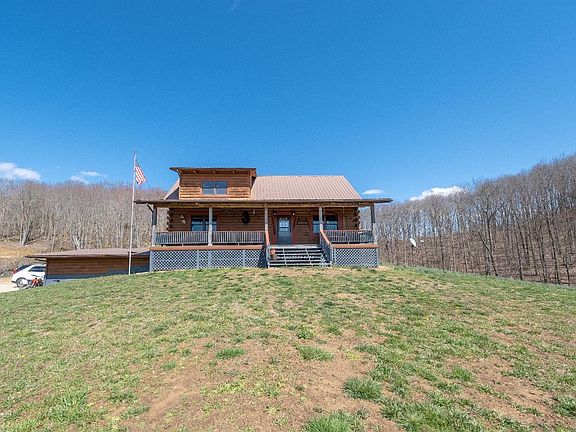 Calling all cabin lovers! This beautiful, well-built real log cabin is sitting on a lovely 10 acres with a full stock pond. This home offers 3 bed, 3 bath, finished basement and an attached work shop. This is perfect for anyone looking for privacy and land to live on. Don't forget about the hunting available with this property. There is a gas well on this property available to use. The driveway is a black top county road that travels all the way to the house. Any thing in the house is available for purchase as well. Don't miss your chance to live the homestead dream!