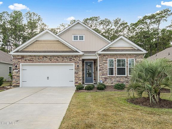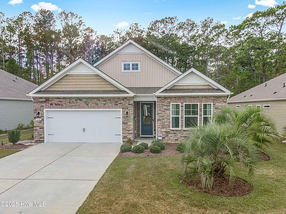 Discover comfort, convenience, and coastal charm in this beautiful Bradford floor plan located in the highly desirable Calabash Lakes community. This inviting home features a stunning stacked-stone front exterior and a serene, mature tree-lined backyard with a covered rear porch—perfect for relaxing outdoors. Step inside to hardwood floors that flow throughout the main living areas. The kitchen is a standout, offering a large walk-in pantry, granite-topped island, and an open layout that connects seamlessly to the great room and spacious dining area. The primary suite includes a generous walk-in closet and a well-appointed bath for added comfort. Residents of Calabash Lakes enjoy resort-style amenities, including a sparkling pool, clubhouse, tennis and pickleball courts, as well as included pest control and grounds maintenance for truly easy living. Ideally located just minutes from top-rated golf courses, shopping, dining, and the sandy shores of Sunset Beach and the North/South Carolina coast, this home offers the perfect blend of relaxation and convenience.