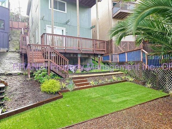Do not miss this beautifully remodeled home in the Almonte neighborhood of Mill Valley. The expansive living room is so inviting with its beautifully refinished hardwood floors, exposed beam wood ceilings, and ample natural light. Sleek kitchen with newer stainless steel appliances and white counters and cabinets. Bedrooms and bathrooms were also remodeled with fresh paint, new flooring throughout and lovely finishes. There is a sunny deck off the back with wonderful water views. Down an exterior staircase leads to an amazing attached apartment including a full-size kitchen, washer/dryer and private deck. Additionally, there is a recently added flat yard at the bottom of the property with artificial turf and gardening opportunities. Large parking feck and full-size washer and dryer included. This owner may consider 1 small pet upon approval with an increase in the deposit. Renters insurance is required.