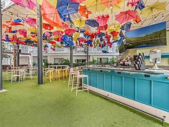 Located in Celebration, the picturesque Disney-styled town with shops, dining, and grocery options nearby is the perfect get away or investment for you. Lovely resort atmosphere with live entertainment, poolside activities, and the option to unwind under swaying palms. Shuttle service to Disney World makes theme park days easy. Around 2.5 miles from Walt Disney World, 10–12 minutes to SeaWorld and Universal. Friendly service and cleanliness, with reviews citing spotless rooms, helpful staff, and comfortable amenities such as an adjacent wellness center and laundry facilities on each floor. The resort and pool features a large circular infinity style oasis with a central sun-island surrounded by palm trees and loungers. There is a poolside bar and hot tub as well. The Wilson 360 Bistro & Bar serves American and Mediterranean cuisine, room service, and poolside refreshments. The room features a king bed, separate living space with sofa-bed, dining area and full kitchen including stainless-steel appliances and balcony. With good vibes, sunshine and adventures abound, the epitome of Florida resort living is here!