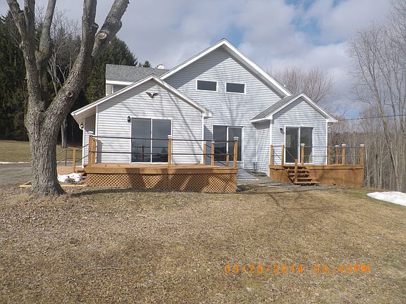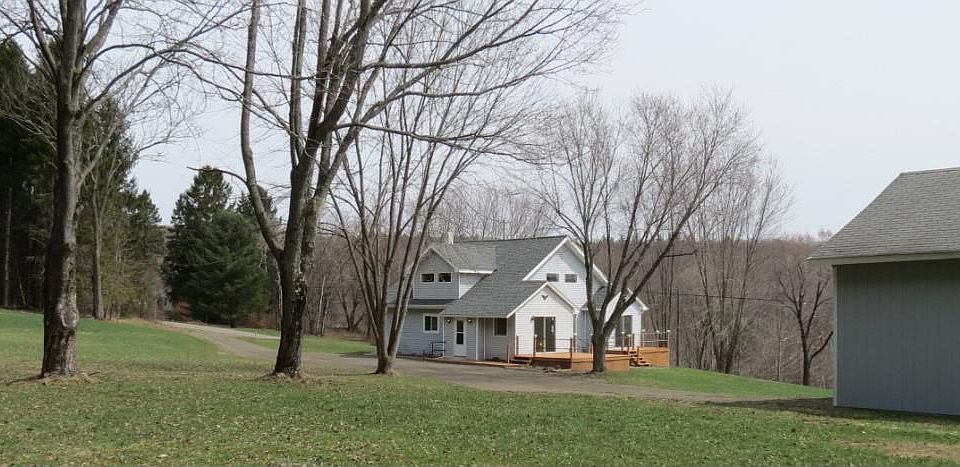 Just like brand new!! This home which was built in the 1800's has been brought back to life. Perfect country location with a barn and over 6 acres - views that go for miles. All original wood floors have been refinished, ceramic tile floors in kitchen with new stainless steel appliances, hickory cabinets,and center island. Two new bathrooms with ceramic tile floors and granite top vanities. New roof and gutters, new septic, and new oil and wood furnace installed. 24 x 40 barn has been completely resided. Great open floor plan with 1st floor laundry and 1st floor bedroom. Large eat-in kitchen that opens to one of 2 decks.