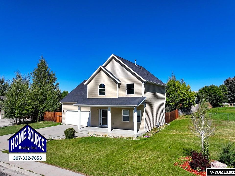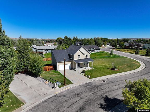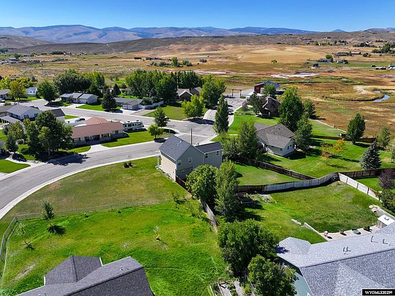 Best buy in the neighborhood! This 1,730 sq ft home sits on a spacious 16,796 sq ft corner lot in the much-loved Indian Lookout Subdivision in Lander, WY. The mature lawn, tasteful 2-story design, peaked roof and covered entry porch contribute to this home's excellent curb appeal. Walk into a large, south-facing living room with updated flooring, offering an immediate bright and inviting experience! This home has a traditional floor plan and style with well-defined and easy to furnish spaces, including a formal large dining room, sizable kitchen and a large living room! You'll immediately feel at home, big in its sq footage, yet this home maintains a cozy feel. The kitchen has ample cabinetry, multiple pantries and generous counter space with a breakfast bar. The full back of the home has windows and a patio door facing the lovely backyard. The primary bedroom has a walk-in closet and an on-suite bathroom. Room for all, the home has 4 total bedrooms, 2.5 baths. One of the bedrooms is large enough to also be a secondary family room or recreation room in lieu of a 4th bedroom. An efficient design, the laundry room is on the same level as all four bedrooms, so no hauling clothes up and down the stairs. The 20' x 25' garage fits two cars with ease. The corner lot provides ample opportunity for off-street parking and space to build a workshop, or just enjoy the wide open landscaped yard. You'll love the location at the back of the subdivision, across from the beautiful greenbelt walkway, and it has a picturesque view of the mountains in the distance. Listen to the birds, gaze at the views and enjoy the serene open space from the privacy of your edge of town location! This home is located in one of Lander's highest selling and most-sought subdivisions that has walking paths, established greenway, larger lots and wide, quiet streets. Don't miss the opportunity to enjoy this spacious home in a prime location at an unbeatable price!