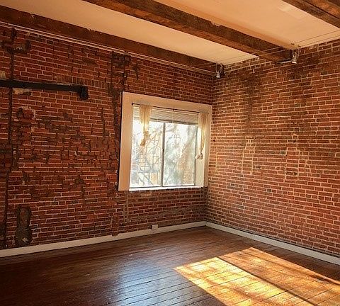 Exposed brick wallsVintage hardwood floorsCathedral ceilings