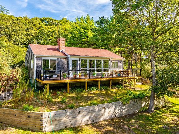 Unique offering - From the moment you drive down the long tree-lined driveway, you will be enchanted with this special property consisting of a beautifully renovated, well-maintained single-level, contemporary home, privately sited, on a generous 3.45 acre lot. Renovated to the highest standards, this year-round Wellfleet retreat features a welcoming central open living plan, with a new modern kitchen, dining area, living room with a wood-burning stove, and an elevated deck that opens to the outdoors. Privately situated bedrooms with gorgeous renovated en-suite bathrooms further complement the home. One of the many outstanding features is the variety of mature trees that add to the overall enjoyment and beauty of this special location. Please call for a private appointment.