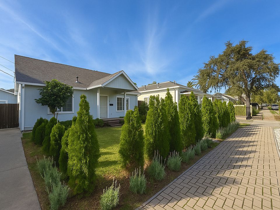 The property offers a long driveway, tall and spacious garage, large backyard, and front landscaping with automatic drip irrigation.