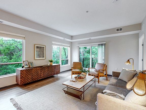 - Exterior features: 9' Ceilings, Additional Upscale Finishes, Balcony/Patio/Walk Out, Business Center, Ceramic Back Splash, Floor to Ceiling Windows, Flooring: Wood, GE Stainless Steel Appliances, Granite Countertops/Islands, Lawn, Lobby Lounges, Maker's Space, Near Biking Trails, Package Receiving, Pet Spa / Grooming Room, Sundeck, TV Lounge, UNEEKOR Golf Simulator, View Type: Mississippi River Views, Yoga Studio