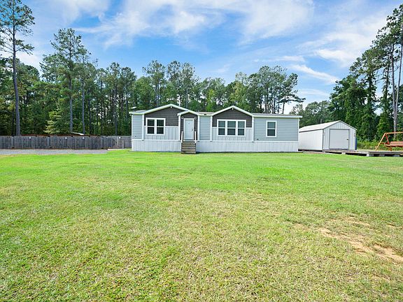 Welcome to your peaceful retreat! This 2022-built manufactured home offers nearly 1,600 sq ft of stylish, low-maintenance living in a serene, wooded setting on 2 ACRES! The interior of this home offers 3 spacious bedrooms & 2 full bathrooms, sheetrock walls with upgraded trim, and luxury vinyl plank flooring throughout. An open-concept layout filled with natural light and modern finishes; along with a large kitchen with ample cabinetry and generous counter space--perfect for cooking and entertaining. Outside you will find a 30-foot round above-ground pool with custom deck, fully enclosed with a privacy fence--ideal for pets, kids, and gatherings, which also includes 2 sheds for a workshop or extra storage. Enjoy the tranquility of nature with the convenience of a move in ready home.