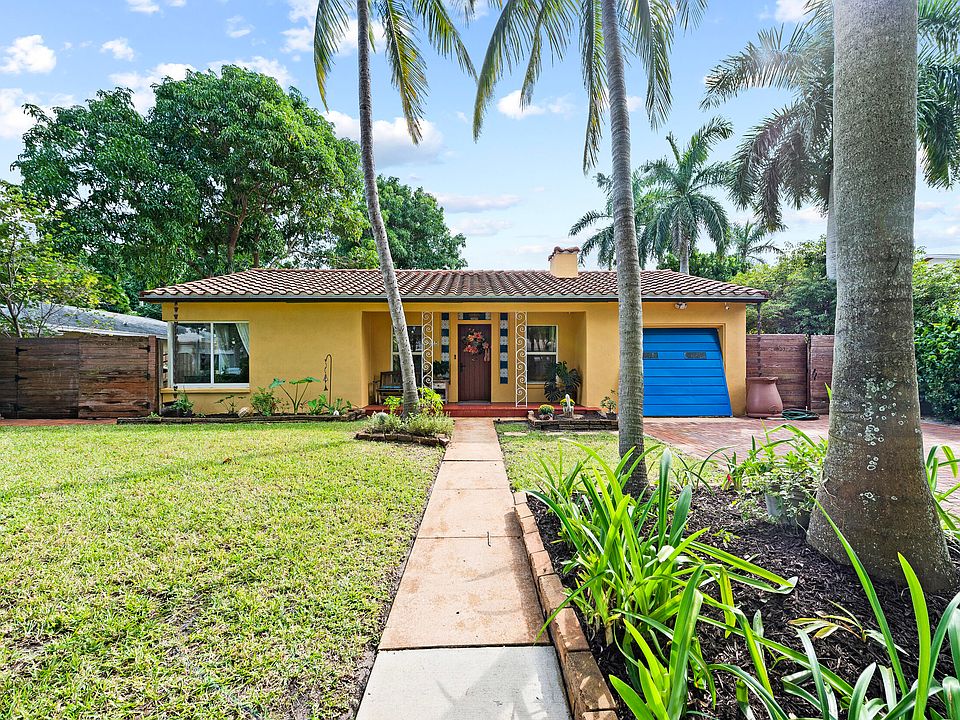 Immaculately maintained one-level 3/2 home, NO HOA, on an oversized lot with private fenced-in tropical oasis backyard. Imagine strolls along mature, tree lined streets, sidewalks and easy access to nearby parks, intra-coastal waterway, zoo, shopping & dining at CityPlace, golf, beaches, and more. *Only 10 MINUTES to the airport!* Travertine marble & wood floors, gorgeous gourmet kitchen with custom solid walnut/ash cabinets and special pull outs trimmed in mahogany plus granite counters, built-in wine rack and premium stainless gas appliances. Did we mention a fireplace? Hand painted deco tiles, wet bar, original built-ins, a 1-car garage. Roof replaced in 2020, hurricane shutters throughout, updated plumbing and electric. Full-size W/D in garage. Well-fed sprinklers. Room for RV / Boat.