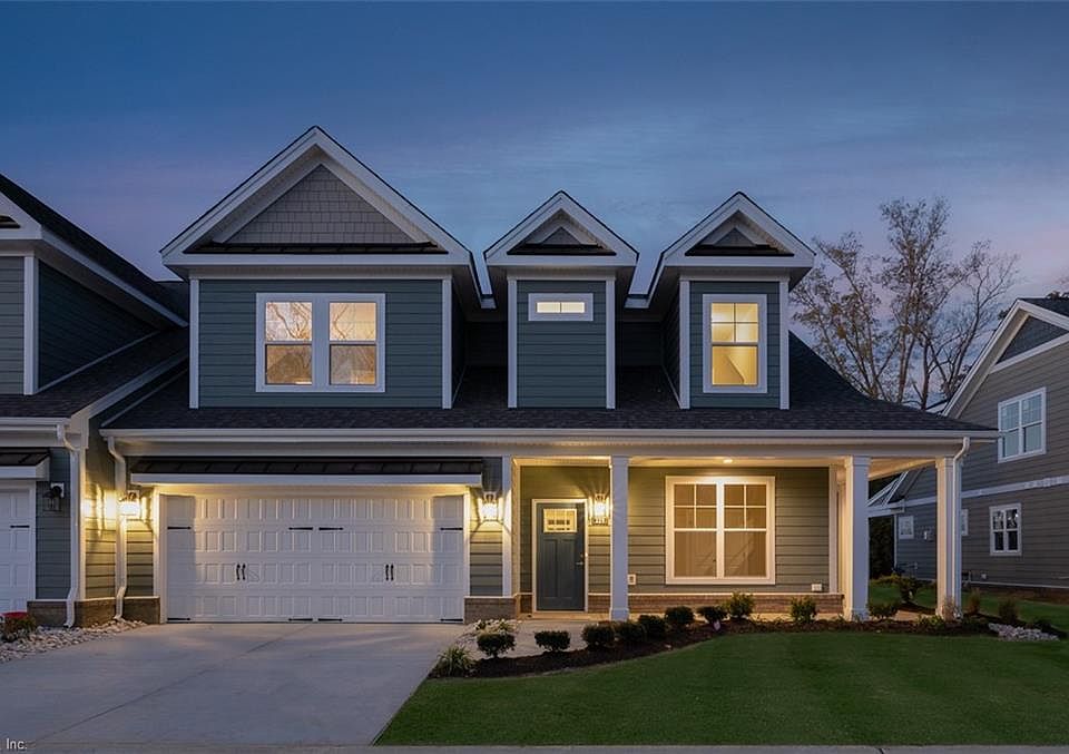 Easy maintenance free living at it's best! Close to the community waterfront amenities, this spacious home has a welcoming wrap front porch, rear covered porch with patio, and beautiful upgrades inside! The open floor plan has a first floor primary suite, first floor office or 4th bedroom, and an eat in kitchen, dining room, and family room. Upgrades include quartz countertops in kitchen and bathrooms, luxury vinyl plank flooring throughout the first floor, upgraded cabinets, appliances, and a generous trim package. Don't wait on this last opportunity to own a new home in this beautiful waterfront community. The neighborhood amenities are over the top with a resort style clubhouse with pool and fitness center, outdoor walking trail, fire pits, community garden, and an "on the water" screened pavilion with pier, boat docks, and kayak launch!