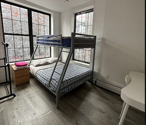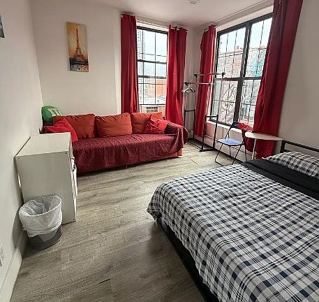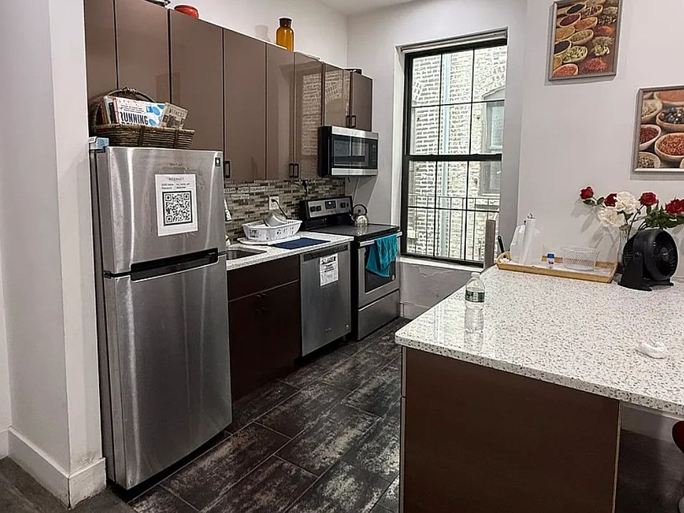 This expansive flex 5-bedroom, 2-bath apartment offers over 1,200 square feet of top-floor living with triple exposures and abundant natural light. Featuring high ceilings and oversized windows, the home feels bright and airy throughout. The open, modern kitchen is outfitted with stainless steel appliances, while both bathrooms are recently renovated and generously sized. Located in a third-floor walk-up, this residence combines space, style, and comfort, making it a rare find.