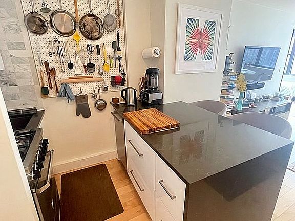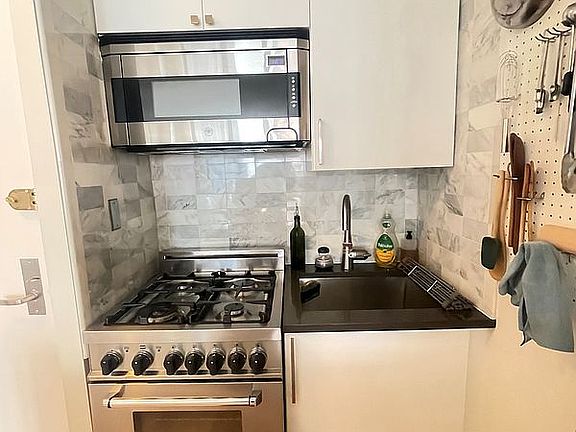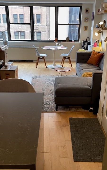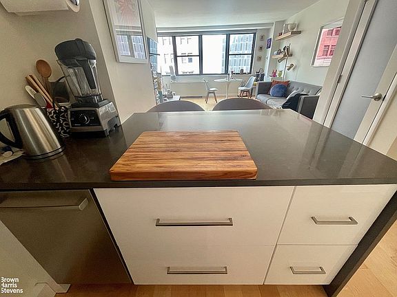 **Mint renovated spacious alcove studio!** Perched high up on the 14th floor, this alcove studio features open north views of Midtown, including the Chrysler Building and Bank of America Tower. The kitchen was gut renovated and opened up to the living room and includes a caesarstone eat-in counter with a waterfall edge. Stainless steel appliances include Bertrazzoni range and convection oven microwave above, Liebherr refrigerator, and dishwasher. Storage was top of mind during this renovation, there are plenty of drawers and cabinets that flank the refrigerator, and all drawers and doors are soft close. Bamboo plank flooring throughout. Unit also features a mirrored barn sliding door in the bedroom area, plus a brand new HVAC unit with Nest thermostat that is bluetooth enabled. Bathroom was fully renovated as well and includes floor to ceiling tile. Maintenance includes heat, hot water, gas and air conditioning (a rarity!) Board permits pied a terres, parents buying with working children, gifting, and subletting after 3 years. Maintenance has remain unchanged for 10 years. Pets allowed! Note board does allow ARMs, but at 75% financing and additional qualifications are required, ask listing agent. 80% financing allowed for fixed rate loans.