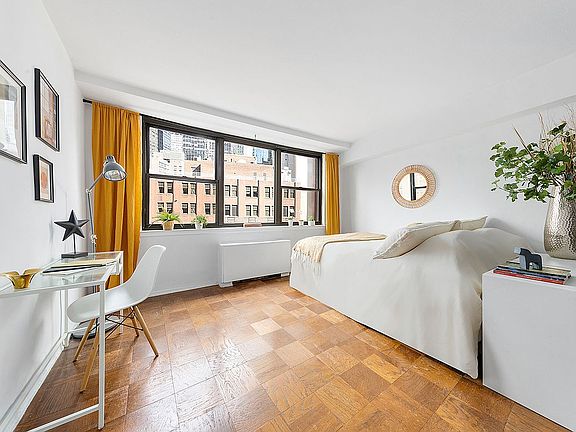 *Unit 15B* is a spaciously designed studio with ample living space, an abundance of natural light with iconic views of the Chrysler Building and city skyline. The separate, meticulously renovated kitchen is adorned with a white subway tile backsplash, quartz countertops, exquisite marble flooring, and top-of-the-line stainless steel appliances. The apartment also comes complete with beautifully preserved hardwood floors and copious closet space accommodating all your storage requirements.