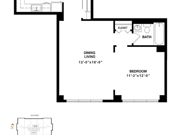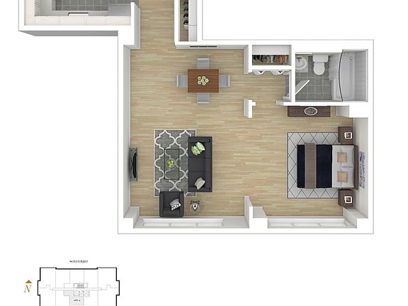 One bedroom with southern views and lots of natural light. Features a galley kitchen with stainless-steel appliances, plank flooring, and generous closet space.