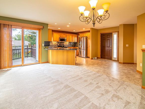 Bright southern sunshine lights up the gorgeous interior of this amazing 3 bedroom, 2.5 bath condominium. Through the front door you'll enter the open concept dream kitchen with granite counters, stainless-steel appliances and elegant cabinetry. The main floor footprint provides a huge living and dining space with vaulted ceiling, warm gas fireplace, 6 panel doors, master suite with walk-in closet and jetted tub, laundry room, additional half bath and large deck for relaxing and entertaining. The finished lower level has a large family room with walk-out access, 2 comfortable bedrooms, full bath, and plenty of storage. The attached 2 car garage and the main entrance are ramped for special needs access. Located on the city's south side, it is a great location for commuters.
