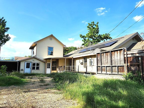 LOOK AT THIS PRICE!! 2-bedroom home with add on that can be used as 3rd bed. Large, roomy living has built ins and fireplace with access to dining room and kitchen. Covered front porch, great location within walking distance to downtown, restaurants and schools as well as easy access to Hwy. 80. Corner lot, tall privacy fence with drive in gate for secure parking, storage or outdoor entertaining. 3 stall carport with storage is inside the fenced yard area. Additional room off of kitchen would be good office or pantry area for kitchen. Full size utility room. There is an entrance from the back yard parking area to the kitchen and the upstairs area that is great for storage or even a 3rd bedroom. Solar panels.