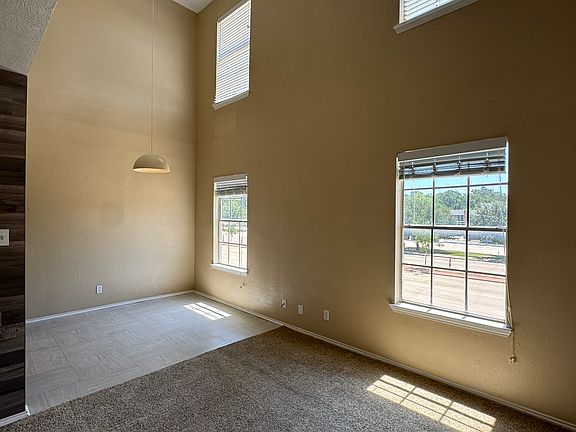 Upstairs unit with a spiral stairs case leading to your loft bedroom area, overlooking your living room and kitchen. Directly across from TWU. Carports first come first serve. Application fee is $50 per person and must be paid with money order or paid online. Each person 18 and over living in the unit must submit an application. Until all applications are received the process will not begin. Deposit amounts are subject to change and could be higher due to credit, income and rental history. $100 additional roommate fee, 2 people max living in the unit. No dogs over 15 pounds on pet friendly properties. $300 NON-Refundable pet fee per pet. Tenant pays electric, water, trash and owner pays lawn care.