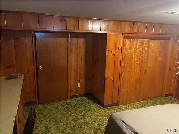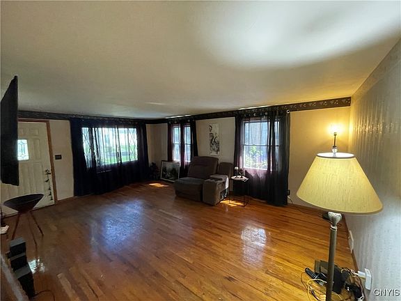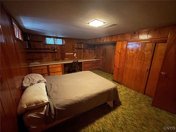 This 4 bedroom 2 bath Liverpool ranch offers 3 bedrooms on the main floor with a large living room. The basement has another bedroom with built in cabinets/ vanity/ storage, another full bath, additional kitchenette, with a stove, sink , fridge washer and dryer that stay. The family room has a built in bar. Carpets were removed to show the hardwood floors in the bedrooms. Repairs are required to make this home shine. The Tax records state the finished basement area at 600 sq ft. The back yard is partially fenced.