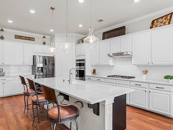 Beautiful Magnolia floor plan in the gated 55+ Del Webb The Woodlands! This spacious 3-bed, 3.5-bath home features a 3-car tandem garage, engineered wood floors, and a landscaped backyard for added privacy. The chef’s kitchen includes quartz countertops, a gas cooktop, pull-out drawers, roll-out shelves, and abundant counter space. Enjoy natural light in the breakfast area and open den. The primary suite on the main floor offers double sinks, a shower, and a vanity area. A guest bedroom with its own full bath is also on the main level. French doors lead to a front study/flex room. Upstairs features a large game/media room, full bath, and third bedroom—plus attic storage. Relax on the covered, screened-in patio. Resort-style amenities and an active social calendar make this home a perfect fit for vibrant 55+ living.