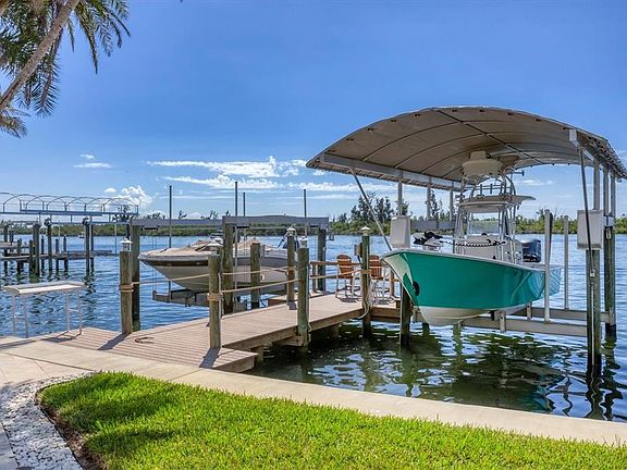 LUXURY ICW ESTATE WITH UNRIVALED BOATING Live the ultimate Florida waterfront lifestyle from this meticulously renovated 5-bedroom, 3.5-bath retreat located directly on the Intracoastal Waterway (ICW). A boater's dream, this home provides deep water access with no bridges to the Gulf - you can be fishing in the famous Boca Grande Pass or cruising to barrier islands in minutes! The exterior grounds are a private oasis, set back on a lush, three-quarter acre lot in the prestigious Cape Haze community. A long paver driveway delivers complete privacy and opens to an expansive lanai and pool deck featuring travertine tiling, a firepit, and nothing but panoramic water views. The newly refinished, pebble-tec pool boasts a heater/chiller for year-round enjoyment. Boating Infrastructure is Top-Tier: Includes two deep water docks and two upgraded 12,000 lb boat lifts with new motors, aluminum bunks, and durable Trex decking. All docks and seawall caps are newly updated. A cleaning station is adjacent to the slips to prepare the days catch! Enjoy incredible water views from nearly every room. The interior boasts new flooring and fresh paint (2025), a new 2023 roof, and two newer 2021 air handlers. The kitchen is a chef's delight with granite countertops, stainless steel appliances, a wet bar, and a wine refrigerator. A thoughtful and private addition was created which is perfect for family or friends. This second floor guest wing features impact-resistant windows, a separate living room, and three vaulted-ceiling bedrooms with a full bath. Situated on a quiet no-wake zone of the ICW—perfect for kayaking or paddleboarding—this location is minutes from stunning beaches, championship golf, biking paths, and waterfront dining. Offered furnished (with some exclusions) for an immediate transition to your new waterfront life.