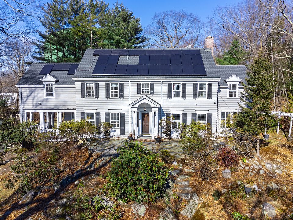 Stunning 1929 Colonial perched atop the historic Federal Hill Overlook District of Bristol. This 5+ bed, 4.5 bath, 3,795 sq/ft home sits on 0.68 acres on a dead-end street. Hardwood floors, built in shelving, and tons of natural light throughout. The eat-in kitchen features granite countertops and a butler's pantry leading to the formal dining room. The living room and sun room are joined by French doors and a double-sided fireplace with a pellet stove - an ideal space for family gatherings. The grand staircase leads to 5 bedrooms and 3 bathrooms on the second level. The third level walk-up attic contains its own full private bath and could easily be an additional bedroom, private office, guest space, etc. There is a walk-out basement and two car garage under the house with additional parking in driveway. Large covered porch is the perfect place to unwind on a warm summer evening and enjoy the sunset over the valley. Quiet and private location surrounded by beautiful historic homes in centrally located Bristol. Inspections for informational purposes only. Home includes solar panel system installed in 2022 - financing for the system must be assumed by the buyer.