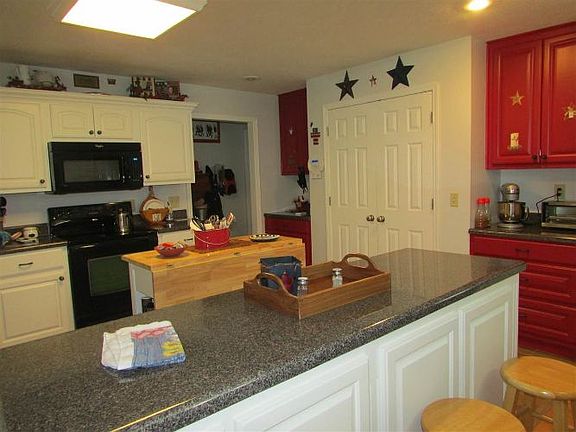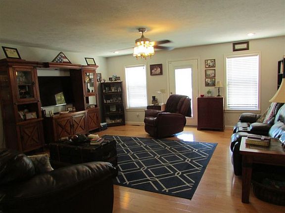 Beautiful home just outside of the city limits with 4.60+ - acres! Home features hardwood, tile and porcelain floors. Open concept Living Room, Kitchen and Dining Room. Separate office space. Large barn with metal siding and concrete floor. Side room that can be used for a home business or guests. Fenced in area behind the barn for pets. Lots of room for kids to play. Safe Room in the garage!