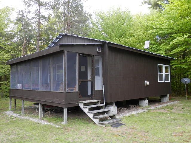 OPEN HOUSE: SATURDAY, JUNE 27th from 10AM - Noon. Camp for sale on 4.7 acres that Borders State Land. Current owners have used it year round. Camp is located in Hopkinton just outside the Parishville Town Line however the mailing address is Potsdam. Approximately 843 feet of road frontage on two roads. Open floor plan with knotty pine walls and ceilings. Camp is 24 x 24 and has an open floor plan. Oak laminate flooring in main living areas and new carpet (2018) in the bedroom. Kitchen has propane stove and propane fridge and they will convey with the property. One bedroom and 3/4 bath. Windows are all double hung. 6 x 24 screened in porch. 12 x 8 shed and a two car garage was built in 2008. Property is located on the St Lawrence County Trail System for 4 wheelers and snowmobiles. Camp is heated by propane. The floor has spray foam insulation and the walls and ceilings have rolled insulation. Inside furnishings will stay with the property. There are also two batteries for solar power. Great little getaway. Call for your showing.