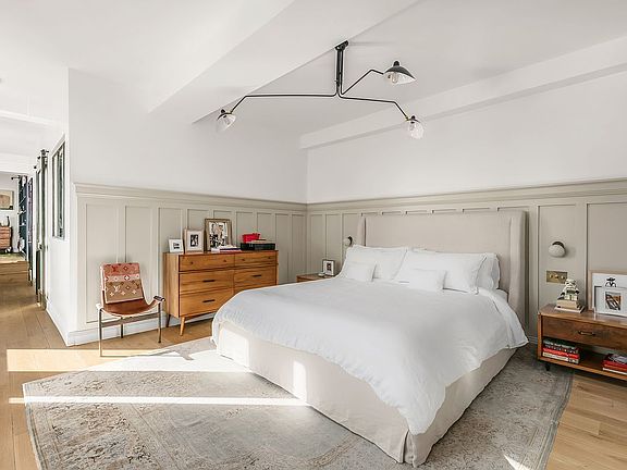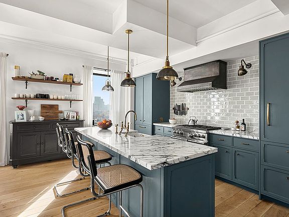 Spanning 2,063 square feet, this 2-bedroom plus home office, 2.5-bathroom home has been comprehensively updated by the current owners and Sugarhouse Design and Architecture. Variable width reclaimed oak hardwood floors lead you into an open and airy living and dining room with corner exposures and tall ceiling heights that were maximized during the renovation. A custom crafted kitchen is open to the main living space and features marble countertops, a glazed tile backsplash, and a suite of professional grade appliances, including a 36-inch Wolf range and Sub-Zero refrigerator. The primary suite offers an abundance of custom millwork throughout, a light-filled en-suite bathroom with Carrara marble floors, glazed wall tiles, separate soaking tub and shower, and an oversized vanity with dual sinks, plus a large home office with built-in bookcases. A second bedroom with en-suite bath is also generously sized, and laundry is offered in-unit.