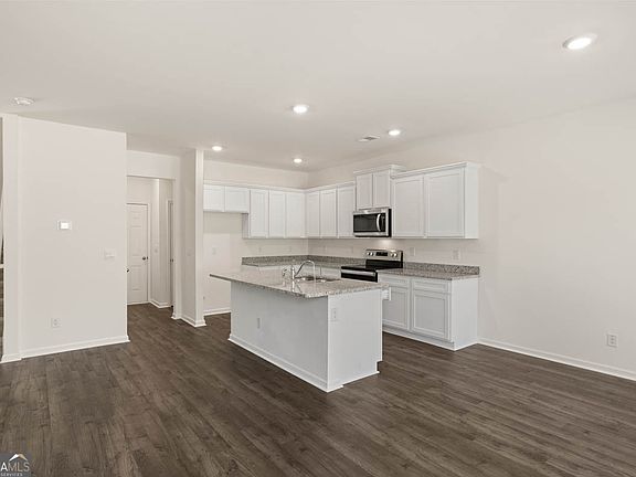 Step inside Saratoga and experience the charm of this beautifully constructed 3-bedroom, 2.5-bath home in the highly sought-after Poplar Preserve community of Newnan. With almost 2000 square feet of living space, this two-story home offers a spacious layout ideal for both everyday living and entertaining. The main level features a bright and open floor plan with 9-foot ceilings, creating an airy feel throughout. A large family room seamlessly flows into a chef-inspired kitchen with a generous island, quartz countertops, stainless steel appliances, and a walk-in pantry for maximum storage. The dining area offers a stylish space for casual meals or hosting friends, while the level, private backyard is perfect for outdoor entertainment. Upstairs, the tray-ceiling owner's suite includes dual walk-in closets and a spa-like en-suite bath with dual vanities. Two spacious secondary bedrooms share a full bath, and the upstairs laundry room adds convenience to the home's functional design. Located just minutes from I-85, Ashley Park, and Piedmont Newnan Medical Center, and zoned for top-rated East Coweta schools, this home is also steps away from the community's zero-entry pool, clubhouse, and playground. Whether you're looking for more space, an upgraded kitchen, or move-in ready style in a well-connected location-this home checks every box. Schedule a private showing today.
