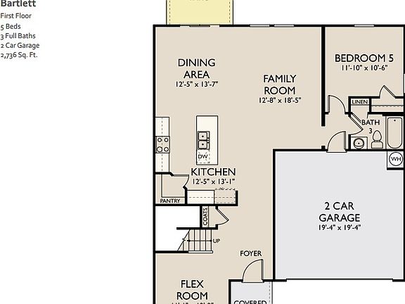 Homesite #39 - "The Bartlett" - Ready to Move In- Create memories when you step inside the five-bedroom Bartlett plan. This two-story home features a versatile flex room off the foyer, a covered patio off the dining area, and a bedroom on the main level ideal for guests. The open, designer-curated kitchen overlooks the spacious living room and features professional curated design finishes. Here, you'll find gorgeous cabinetry, quartz countertops, tile backsplash, and stainless appliances. On the second floor, a large loft area offers space for a media room, play room, or home office. The primary suite has a generous walk-in closet, tiled walk-in shower, and a dual vanity. Upgrades include tray ceiling in the owners suite, and a covered patio. Three secondary bedrooms, a full bathroom, and a laundry room with storage closet complete the second floor. Pictures of same floorplan with same finishes and actual floorplan.