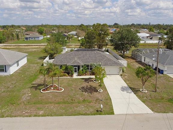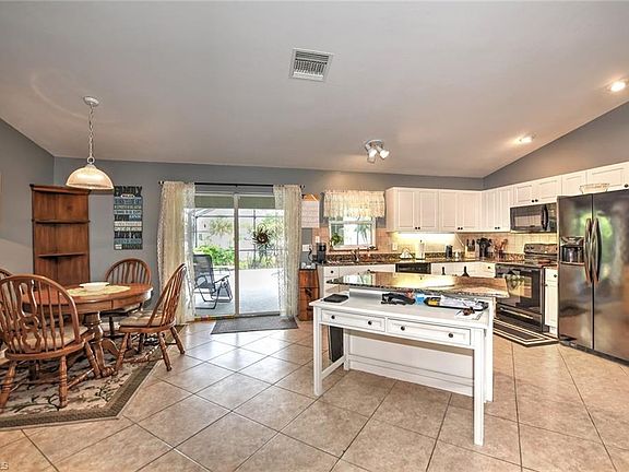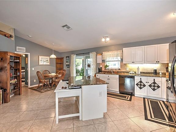 This stunning 3 bed, 2 bath home is perfect for those seeking both comfort and style. Inside you'll be greeted by an open floor plan, with vaulted ceilings and 18” tile floors that have been beautifully laid on an angle. Freshened up with new paint inside and out, plush carpet in the bedrooms, and upgraded light fixtures and fans. The roof and all windows were replaced in 2019 and have hurricane shutters, and the AC was replaced in 2015. The kitchen is a true chef's delight, with granite countertops, upgraded cabinets, and a beautiful tile backsplash that ties the space together. The dining room is perfect for hosting dinner parties, with plenty of room for all your loved ones. The split floor plan is perfect for those seeking privacy. The master bathroom features a tub and separate tile shower, making it the perfect space to relax and unwind. The Jack & Jill bathroom goes into the 2 guest beds and den. Out back you'll find an oasis that's perfect for entertaining, with a large pool that overlooks the 6’ privacy fenced yard on a canal with a 10 x 12 shed rated for 160mph winds. This home is conveniently located just minutes away from the SW FL Airport, I-75, and FGCU.