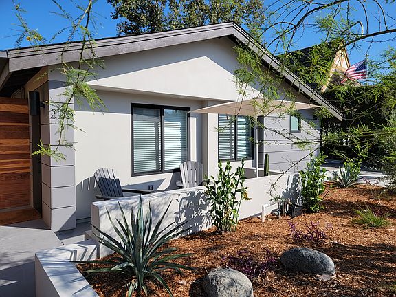 This new fully furnished apartment is as functional as it is beautiful. It has a separate entrance and everything you'll need for a peaceful and enjoyable stay. There are luxurious touches that make this apartment stand out and provide comfort and convenience! Located on a quiet cul-de-sac in Olivenhain Bluffs neighborhood with convenient street parking in front. Close to shopping, dining and 3 miles to the beach! Great area for walking with spectacular views and beautiful greenbelt park. The apartment has a Mid-Century Modern and Scandinavian style. The living space includes a convertible couch bed, Smart TV and fully stocked kitchen, including a dishwasher! Mountain spring quality water is available on tap. The bathroom features a lighted mirror with de-fogger and modern fixtures. The bedroom has a comfy queen size Casper mattress with soft linens, full length mirror, and a walk-in closet with fold-down ironing board. A dedicated workspace is in the bedroom perfect for taking care of business. Relax in the patio area that includes a firepit for a cozy evening outdoors. For your convenience, a washer/dryer are in a shed just outside the door. Property available for rent starting December 1. *The apartment includes air conditioning. *Utilities and water included. *HDTV with Amazon Prime Video, Apple TV, Disney+, HBO Max, Hulu, Netflix, standard cable *Eco-friendly and solar powered *The apartment has it's own street number and secure locking mailbox. The owners live in the back. A garage separates the apartment from their house. Property available to show on November 24. 6 months minimum lease. Last months rent due at signing. No smoking allowed on property.