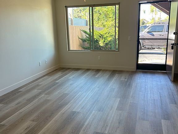 Fantastic location near Moonlight Beach, west of Highway 101 in Encinitas! Close to downtown, shops, restaurants and the train station. Clean and freshly painted studio with updated vinyl plank flooring. Located on the 1st floor and comes with a dedicated parking space right in front. Landlord pays for water and trash removal. Tenant pays for cable and electricity. A 12 month lease is required. Landlord does not allow pets. There is no onsite laundry but there are several laundromats nearby. Please send a text message or call for more information. 12 month lease required. No shorter term rentals. No pets allowed.