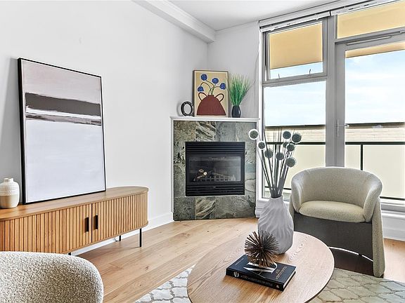 OPEN HOUSE SUN OCT 5TH 2-4pm. Welcome to The Vicino – a sought-after steel and concrete building perfectly positioned in the heart of James Bay. This beautifully renovated 2-bedroom + den, 2-bathroom suite offers 930 sq ft of refined living space and is located on the quiet side of the building. Featuring premium finishings throughout, including New White Oak Hardwood floors, New Paint, granite countertops, stainless steel appliances, gas range, and a cozy gas fireplace. The spacious balcony extends your living space and is perfect for morning coffee or evening relaxation. This pet-friendly building allows for rentals and has no size restrictions on dogs or cats – a rare find in such a central location. Just steps to the Inner Harbour, downtown, Cook Street Village, Beacon Hill Park, and all of James Bay’s vibrant amenities. Opportunities to own in this exceptional building are rare – don’t miss your chance!