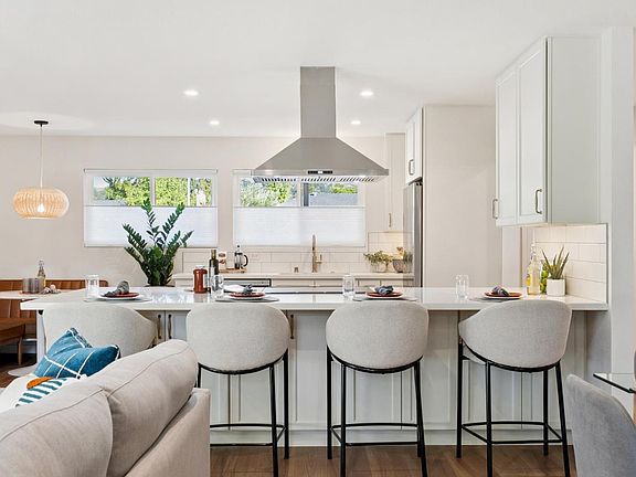 Private fenced yardFitch mountain viewsModern baseboardsContemporary dimmable lightingReimagined kitchenChampagne bronze fixturesRefined tile surrounds