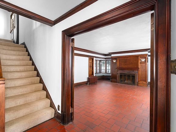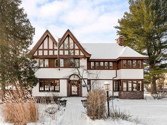 An English Tudor home nestled in the historic Congdon Park neighborhood, this residence offers a perfect blend of timeless elegance and modern comfort—from the Half-Timbering, Steep Roofs, Crenellations, and Tudor Arches, and Overhanging Second Floors. The main floor showcases a thoughtfully designed formal living room that features a stunning wood-burning fireplace, both diamond-shaped and traditional muntin-style windows, high ceilings, and terracotta floors! The formal dining room is a bright and cozy space for hosting dinner parties. An expansive kitchen with a Butler's prep area will impress the culinary wizard! From the pantry, cabinetry, and laundry area, everything you need is in one space. A large space for informal dining or create a great room for gathering. A hexagon-patterned parquet floor and beamed ceilings are lovely accents to the space. The sitting room will become one of your favorite rooms in the home. It is accented with arched windows, built-in bookcases, and a stunning wood-burning stove. It is a divine place for morning coffee or unwinding with your favorite book or movie. Upstairs, you'll find the generously sized bedrooms, each offering its unique charm. The original master offers a creative closet design, a private sunroom, and a quaint space for an office. The current master was added with the addition to the home completed in 1984. There is abundant sleeping space, closets, and private baths with separate tubs and showers. There is a three-quarter bath that completes the second floor. Through this area is the winding staircase to the impressive third floor, with multiple spaces. A family room with play areas, an art/photo studio, and guest sleeping quarters, the choices are plenty. The basement has a workshop with a sink and loads of storage. The tuck-under is heated, plus there is an amazing storage area behind it. The yard is lovely, with a sweet garden shed! Plenty of off-street parking and, best of all, peeking views of Lake Superior.