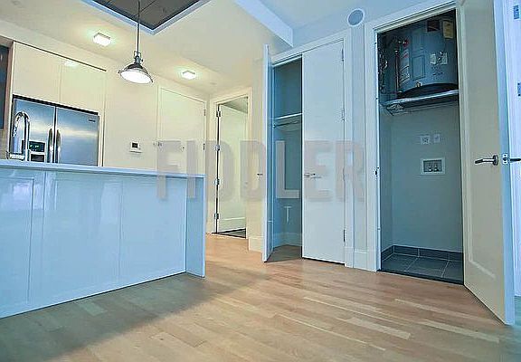WD hook-ups in unit, machines not included. Shared laundry in building as well. No Broker Fee - chef's style kitchen with stainless steel appliances including a dishwasher and microwave - large open plan living room and dining room with access to the balcony - marble tiled bathroom with two entries - large bedroom with floor to ceiling windows - hardwood floors throughout - iPod dock with ceiling embedded speaker system Building features (free amenities) - 24/7 Doorman w/ virtual system & package hold - Fitness center - Furnished roof deck w/ BBQ, loungers, picnic seating - Resident lounge - Free WiFi in common areas - Laundry room - On-site parking (additional fee ask for availability) - Media room at sister building 205 N9 Pets allowed US guarantors welcome