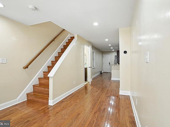 Welcome home to this charming brick-front rowhome offering the perfect blend of style, comfort, and convenience. Step inside to find beautiful hardwood floors flowing throughout the home. The bright and airy living room is perfect for entertaining and seamlessly opens to a spacious kitchen featuring granite countertops, stainless steel appliances, and ample cabinet and prep space. A main-level powder room adds extra functionality. Upstairs, the generous primary bedroom includes a large closet, while a second bedroom is perfect for guests or a home office. The full bathroom boasts a luxurious soaking tub with custom tile surround—ideal for unwinding after a long day. The fully finished lower level provides additional living space, perfect for a second living room, playroom, or rec area. Head up to the rooftop deck to enjoy panoramic views and catch fireworks on the Fourth of July or New Year's Eve. Additional features include a rear parking pad—say goodbye to street parking!—and a prime location near Route 40, Patterson Park, Johns Hopkins Hospital, Canton, Fells Point, and the Inner Harbor. Don’t miss your chance to own this beautifully maintained city gem!